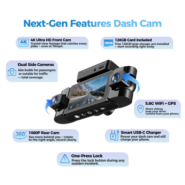 When we hit the road for a trip, our sleek dash cam became our silent guardian. It kept watch on every side—capturing the front in case of sudden stops, the rear for tailgaters, and the sides to help us maintain a safe distance.